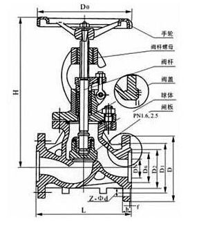夾套保溫截止閥主要外形尺寸: