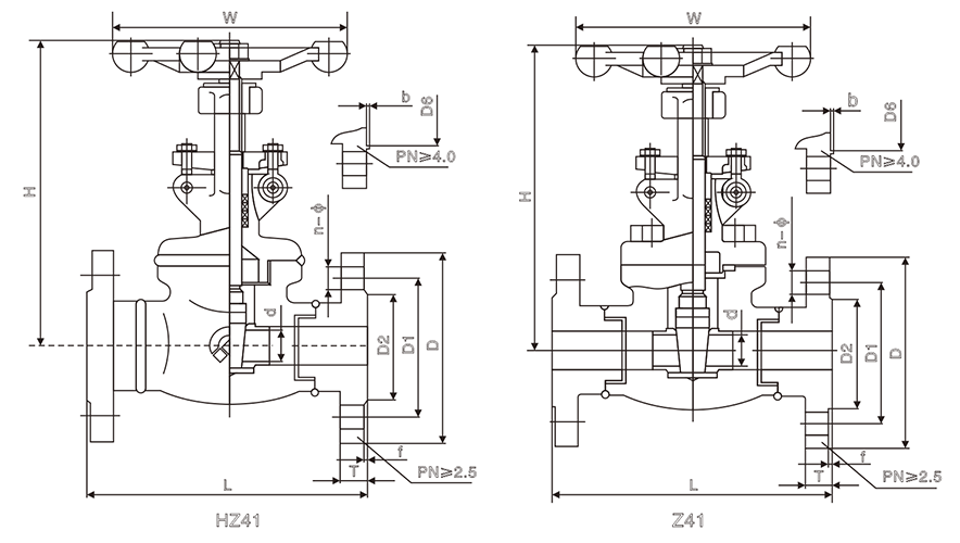 | 公稱壓力 | DN(mm) | 15 | 20 | 25 | 32 | 40 | 50 | 65 | ||