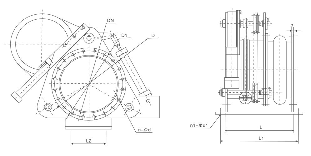 1、本閥由左右閥體、扇形閥板、不銹鋼波紋管、驅(qū)動裝置、夾緊裝置等部件組成;