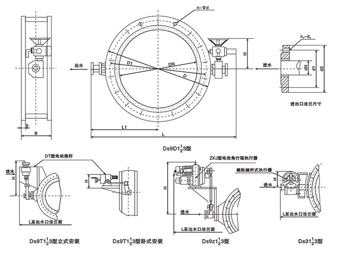 主要由閥體、閥桿、蝶板和密封圈組成。閥體呈圓筒形,軸向長度短,內(nèi)置蝶板。驅(qū)動方式采用電動或氣動執(zhí)行器驅(qū)動。